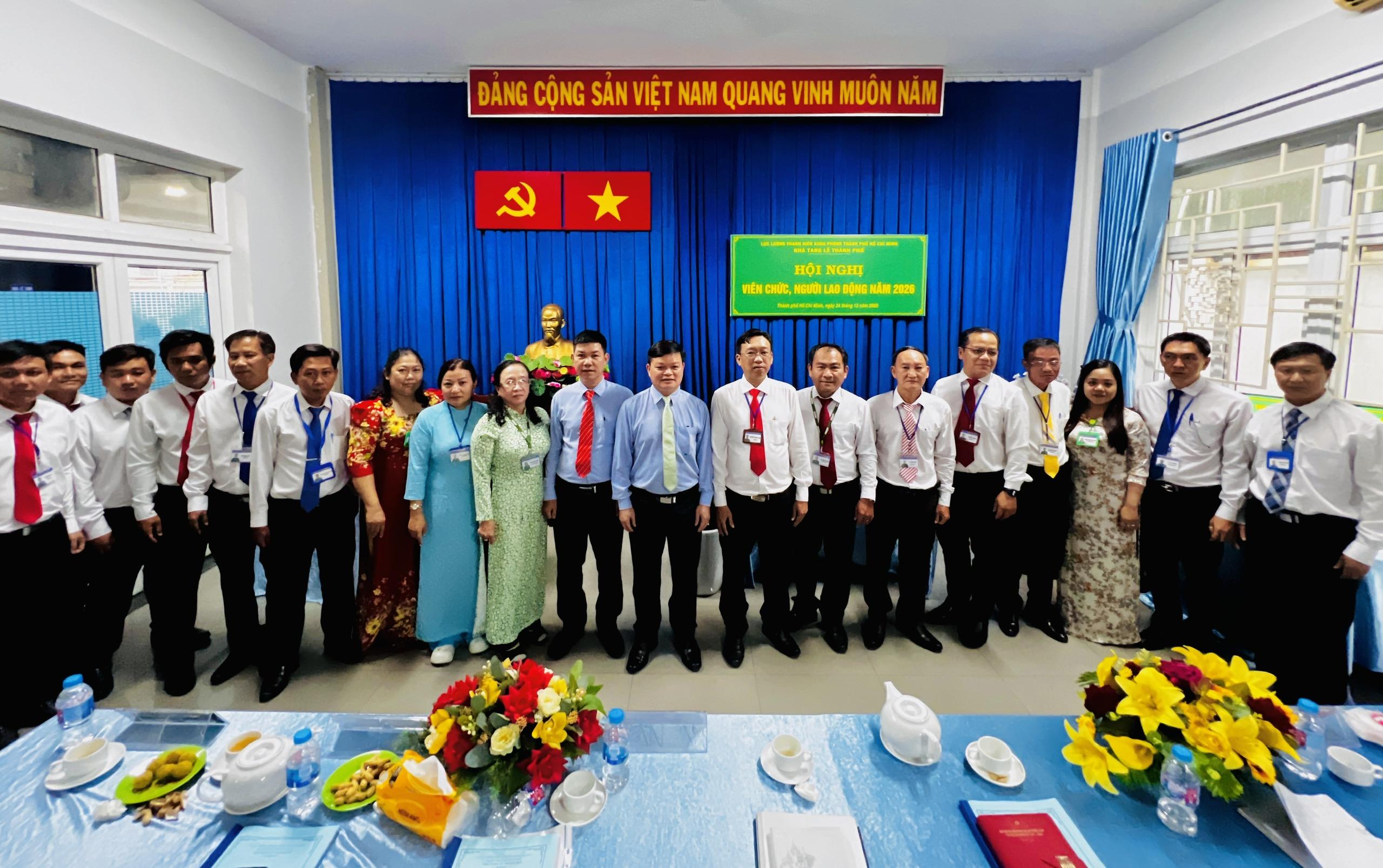 Bên cạnh đó, đơn vị cần thực hiện nghiêm Quy chế dân chủ ở cơ sở, bảo đảm đầy đủ các chế độ, chính sách; quan tâm chăm lo đời sống vật chất, tinh thần cho viên chức, người lao động. Đồng chí cũng đề nghị Nhà Tang Lễ Thành Phố tích cực tuyên truyền, tham gia các hoạt động kỷ niệm 50 năm Ngày truyền thống Lực lượng Thanh niên xung phong Thành phố; quan tâm đầu tư, triển khai các sáng kiến, cải tiến, nâng cao hiệu quả quản lý và chất lượng phục vụ. Ngoài ra, Ban Giám đốc đơn vị cần chú trọng công tác chăm lo Tết Nguyên đán cho viên chức, người lao động, bảo đảm mọi người đều được đón Tết đầm ấm, an vui, góp phần hoàn thành tốt nhiệm vụ chính trị năm 2026. Hội nghị viên chức, người lao động năm 2026 của Nhà Tang Lễ Thành Phố đã diễn ra trong không khí nghiêm túc, dân chủ, đoàn kết và thống nhất, tạo tiền đề quan trọng để đơn vị tiếp tục phát huy kết quả đạt được, hoàn thành tốt các nhiệm vụ được giao trong năm 2026.